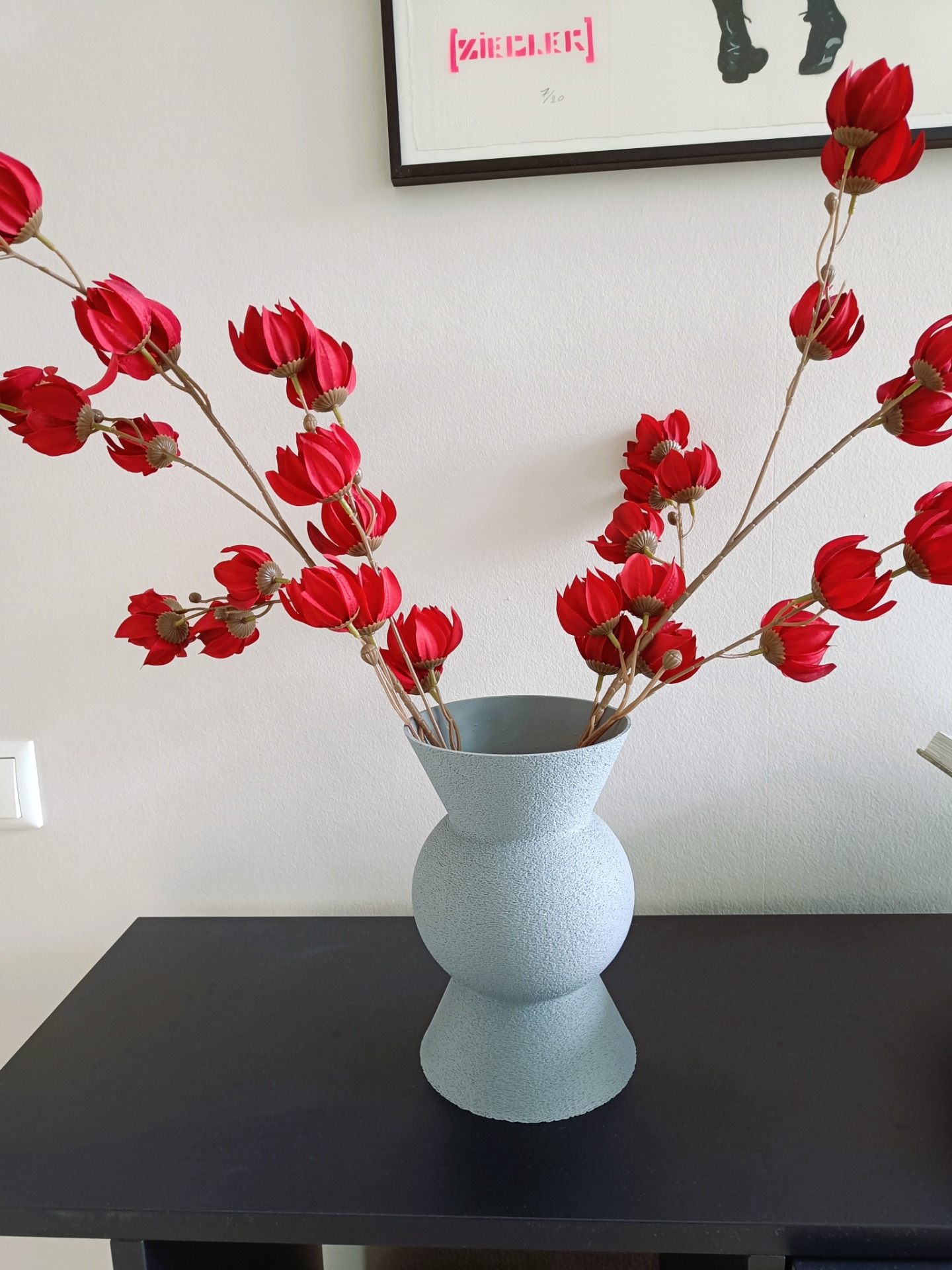 Prachtige 3D geprinte vazen van het merk Dennismaass. Deze vazen zijn geen vintage maar nieuw! Door de coating aan de binnenzijde is de vaas volledig waterdicht en kunnen er dus echte bloemen in. Hoe bijzonder is dat! Ze zijn bestand tegen koud en lauwwarm water. Ook één beschikbaar in de grijze kleur.